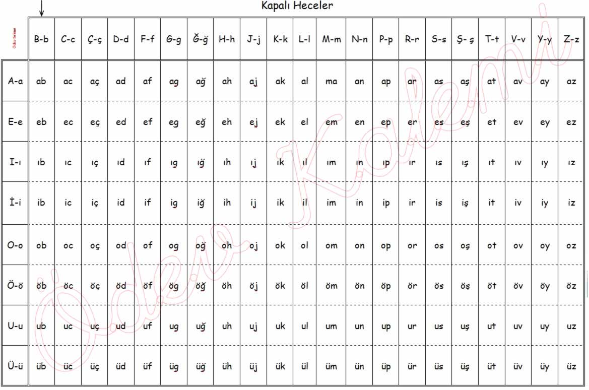 Tum Sesler Kapali Ve Acik Hece Tablosu Indir 2017 2018 Teknobasit
