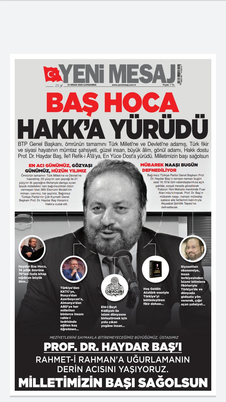 Yeni Mesaj Gazetesi On Twitter Muhterem Prof Dr Haydar Bas Hocamizin Cenazesi Yarin Ikindi Vaktinde Topraga Verilecektir Haydarbas